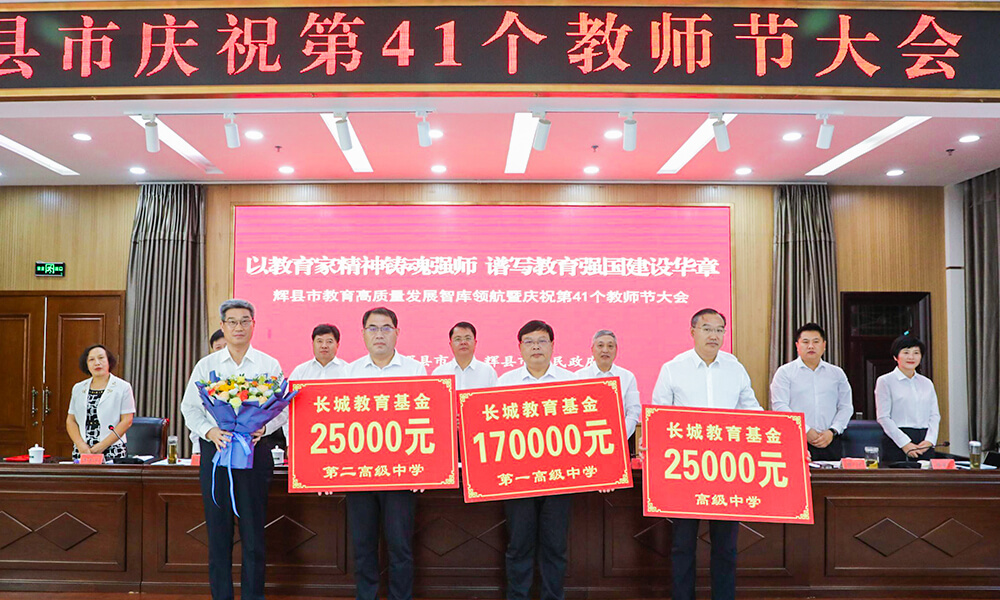 9月9日上午9點,輝縣市教育高質量發(fā)展智庫領航座談會暨慶祝第41個教師節(jié)座談會隆重召開。借助政府搭建的平臺,新鄉(xiāng)長城再次為當地優(yōu)秀師生頒發(fā)獎助金,這不僅僅是一場儀式,更是新鄉(xiāng)長城八年來對教育事業(yè)始終如一的堅守。